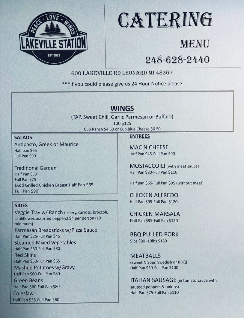 With Meat Sauce: Half Pan $80 and Full Pan $110
